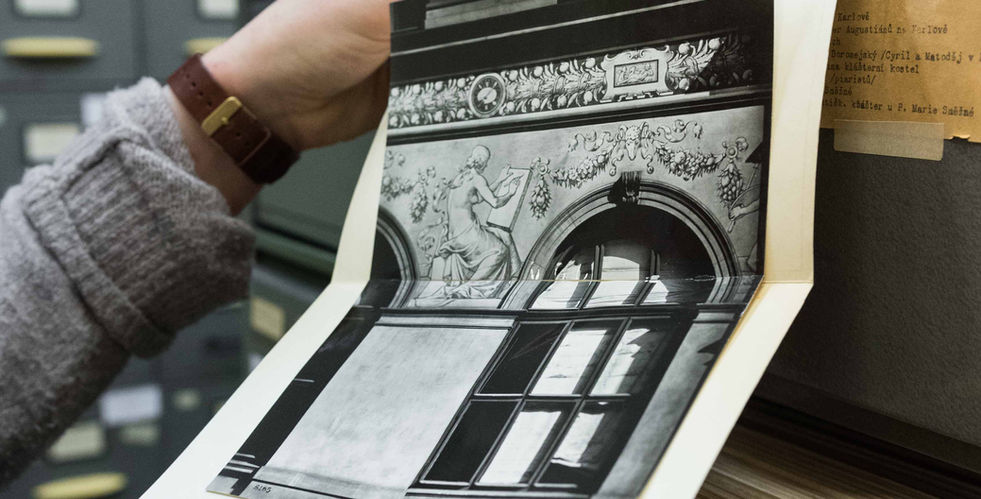 During World War II the original glass ceiling was completely destroyed and subsequently replaced by cheap white plexiglass, which served for roofing for several decades until 2018. Only a few drawings, a few fragments from the shards of the original glass, and negatives on the glass plates that have been digitized have been preserved in the National Museum depository. These modest materials then served to define the original color of the painting.