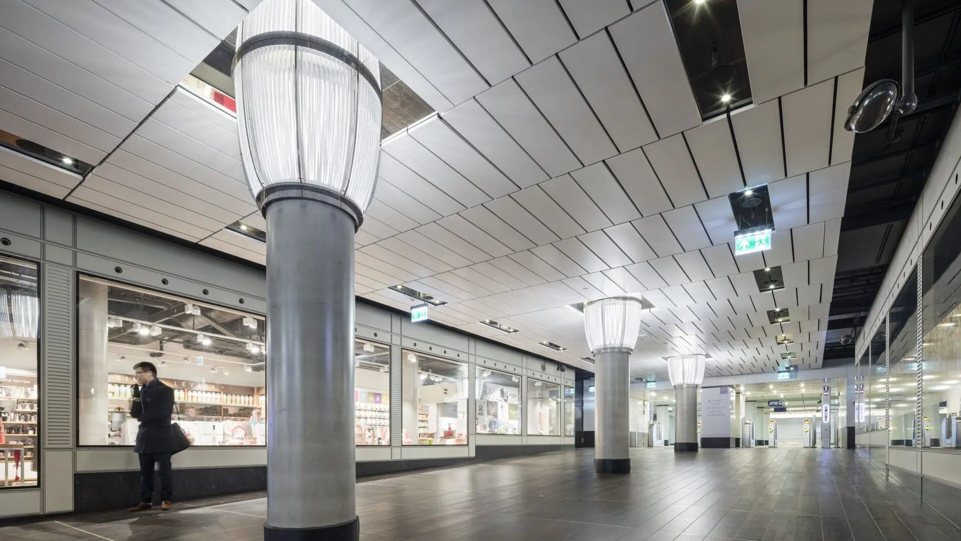 31 light columns illuminate one of the busiest public passages, transforming everyday movement into an experience of rhythm and light.
