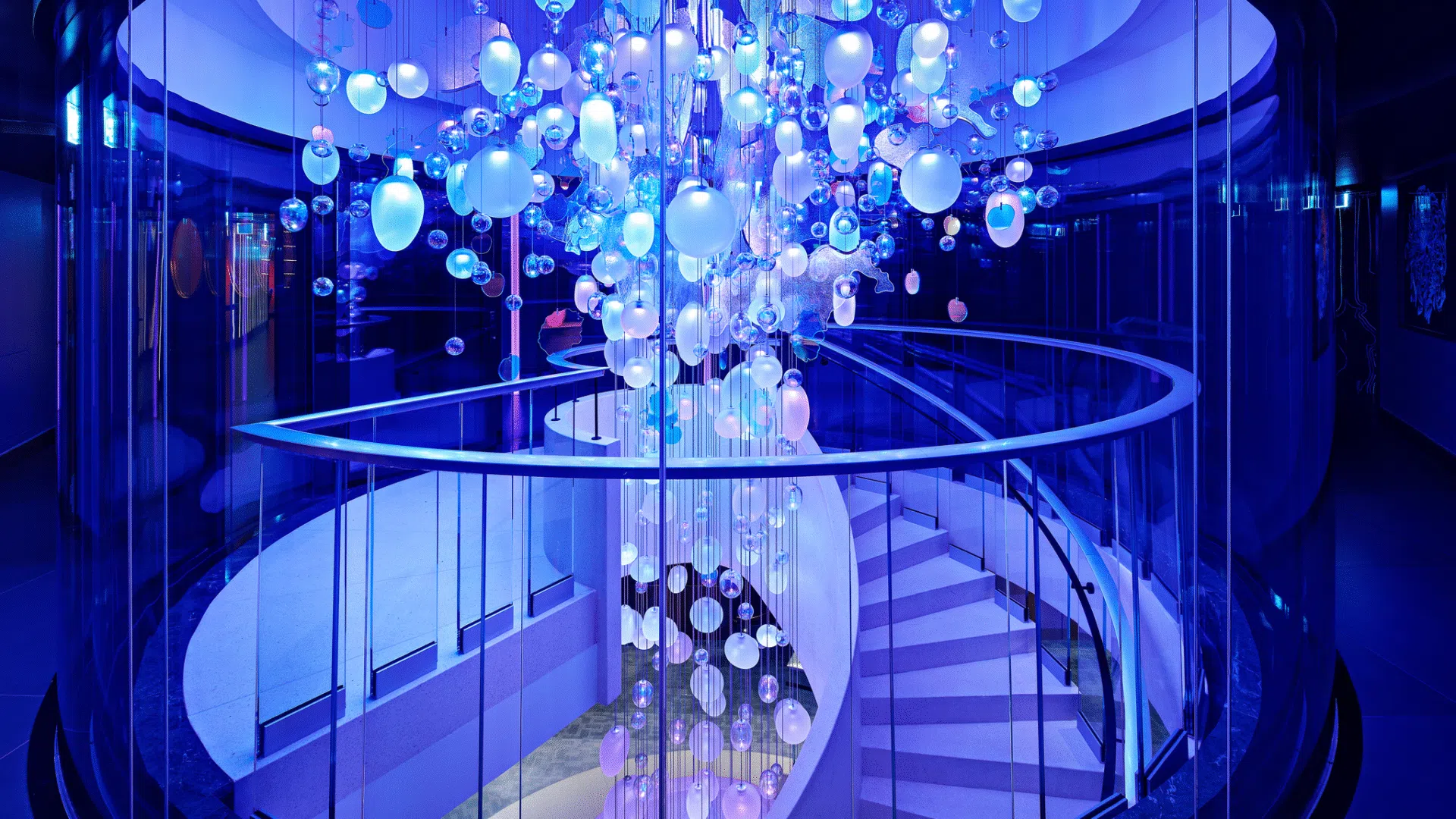 At the heart of FIVE Zurich, one of Europe’s most vibrant luxury lifestyle destinations, Mind Reflection transforms the property’s historical grand staircase into a luminous centrepiece. Inspired by the complexity of the human mind and its emotional response to music, the sculpture becomes a visual journey of rhythm, colour and light.