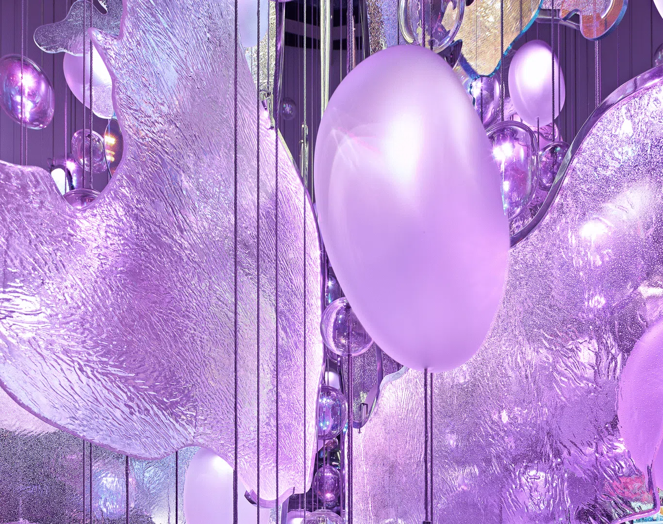 Handcrafted in Nový Bor, the work combines over 1 000 glass components created through multiple techniques: blown, fused and sanded crystal. Each piece is illuminated from within using dynamic RGBW lighting, shifting the sculpture through a living spectrum of colour.